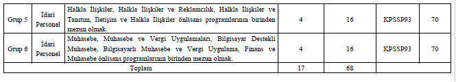 Gruplar itibariyle İdari Personel giriş sınavı konuları, soru sayıları ile puanları aşağıda “Giriş Sınavı Konuları/Değerlendirme Kriterleri ve Puanları” tablosunda gösterilmiştir.